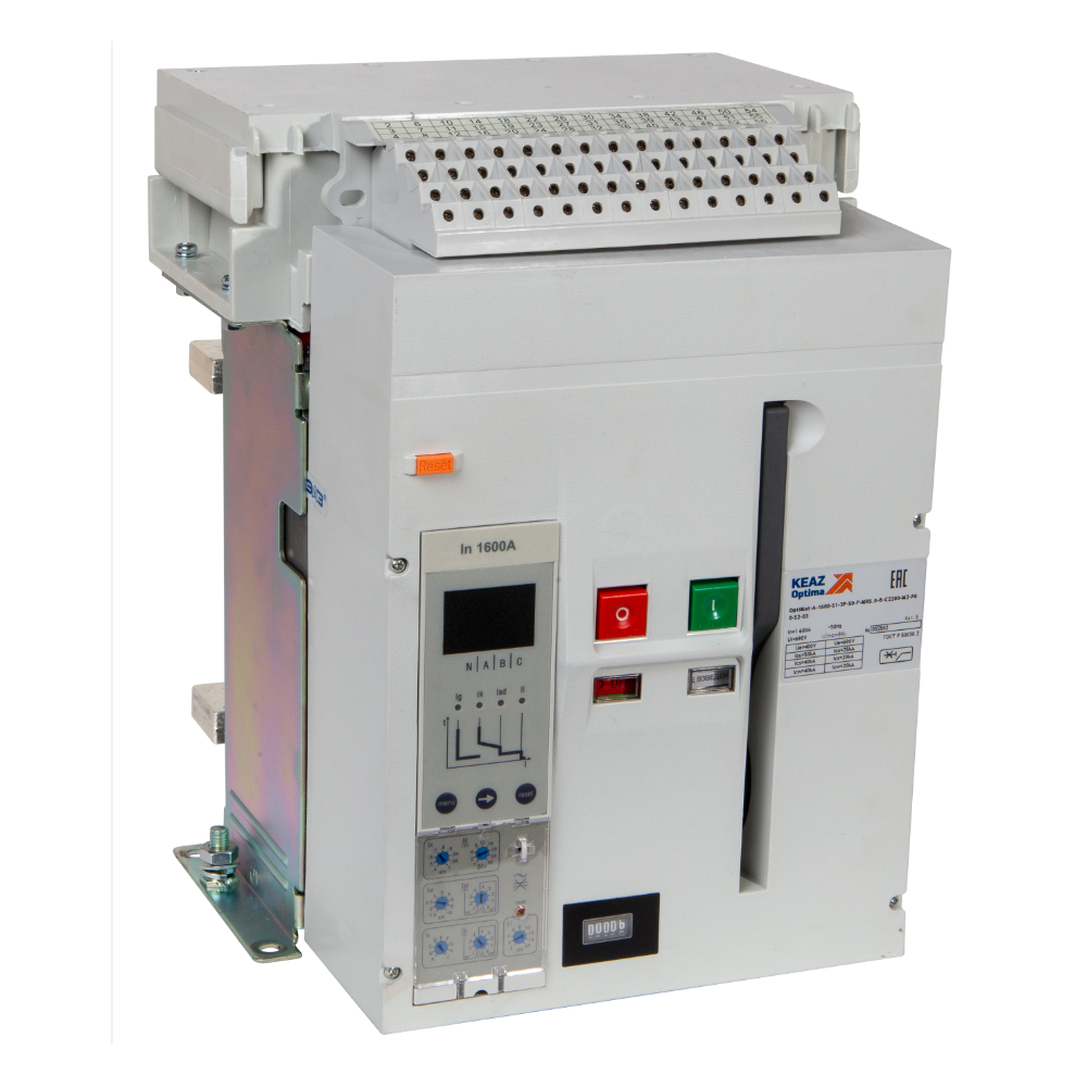 Воздушный автоматический 3 полюсный выключатель переменного тока с предельной коммутационной способностью при переменном токе 50 кА на номинальный ток 630 А .