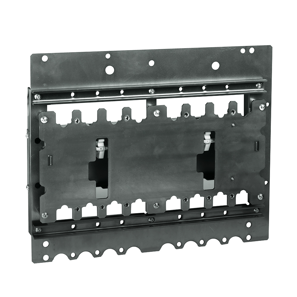 Взаимная механическая блокировка служит для исключения возможности одновременного включения двух выключателей OptiMat D. Блокировка с выключателями может устанавливаться горизонтально и вертикально и представляет собой раму с монтажными платами для крепления на них выключателей. Таким образом не блокируется доступ к настройкам расцепителей защиты, а также доступна установка ручных дистанционных приводов и двигательных приводов для организации автоматического ввода резерва с обеспечением электрической и механической блокировки включения двух вводов.
