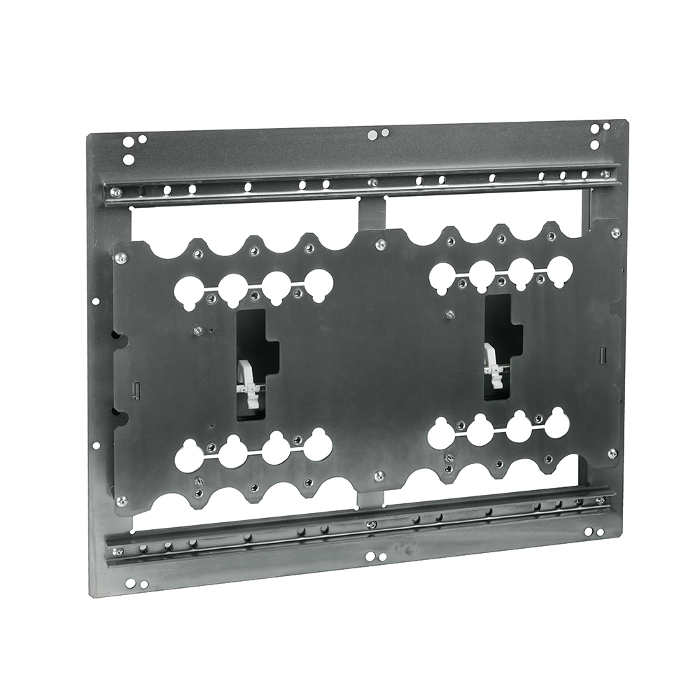 Взаимная механическая блокировка служит для исключения возможности одновременного включения двух выключателей OptiMat D. Блокировка с выключателями может устанавливаться горизонтально и вертикально и представляет собой раму с монтажными платами для крепления на них выключателей. Таким образом не блокируется доступ к настройкам расцепителей защиты, а также доступна установка ручных дистанционных приводов и двигательных приводов для организации автоматического ввода резерва с обеспечением электрической и механической блокировки включения двух вводов.