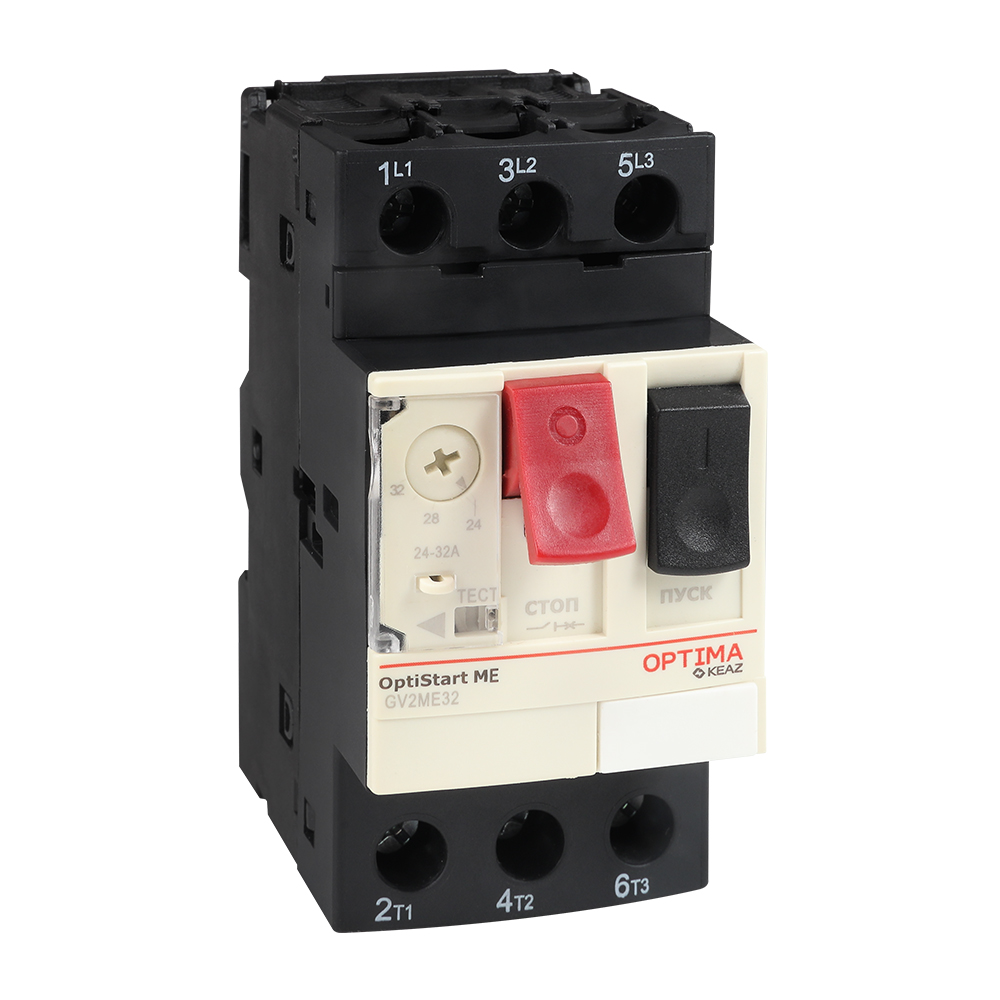 Автоматический трёхполюсный выключатель защиты двигателя 10А класса теплового расцепителя переменного тока с регулируемым диапазоном 0,25-0,4A, на номинальный ток 0,4А.