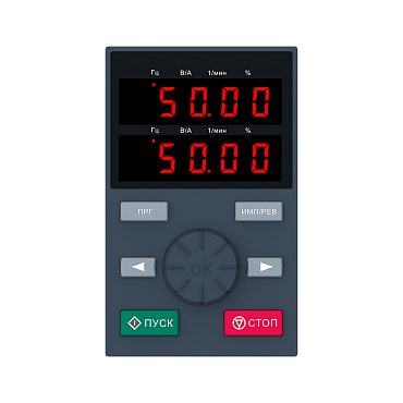 Двухстрочный пульт оператора предназначен для работы с преобразователями частоты серий VF-51 и VF-101. Он предоставляет возможности: