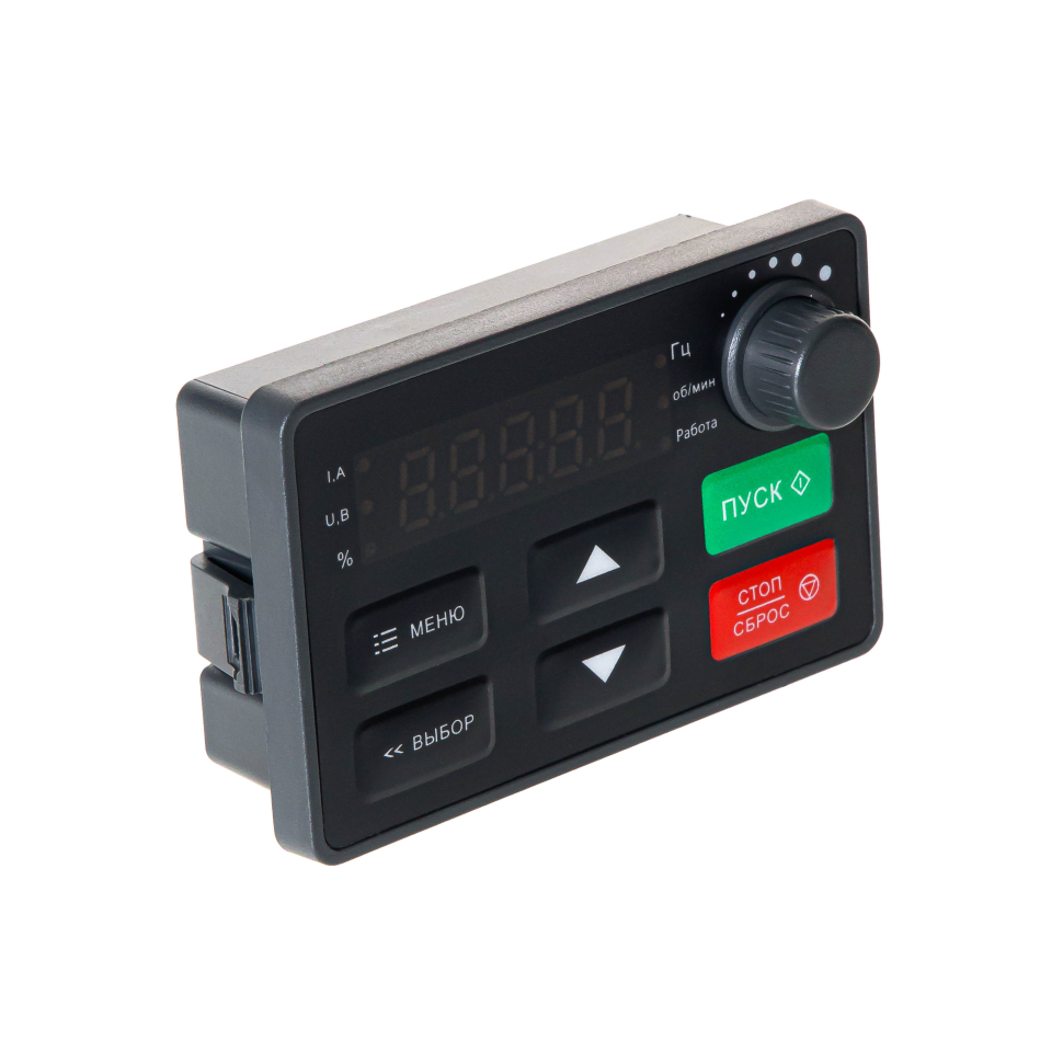 Однострочный пульт оператора предназначен для работы с преобразователями частоты серий VF-51 и VF-101. Он предоставляет возможности: