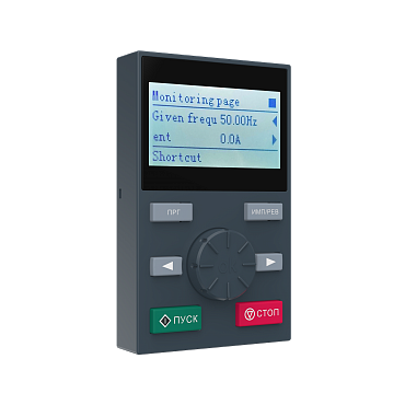– пуска, остановки и удобного задания частоты при помощи встроенного поворотного энкодера;