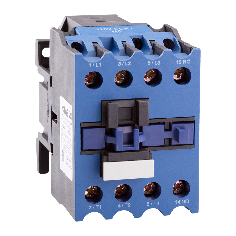 Контактор с катушкой управления переменным током напряжением 220 В на номинальный ток 25 А.