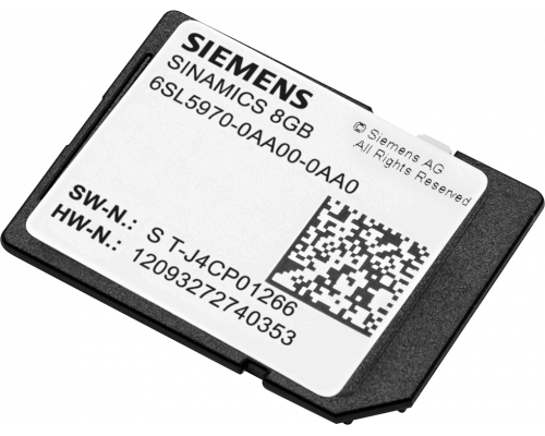 Предназначена для использования с приводами SINAMICS. Объем карты памяти составляет 8 ГБ. Карта памяти поставляется пустой, что позволяет пользователю самостоятельно записывать необходимые данные и конфигурации на карту памяти.