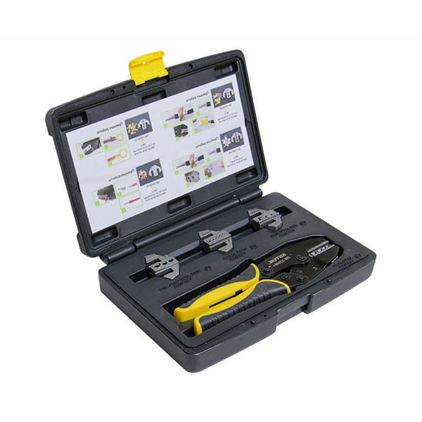Набор инструмента SHTOK пресс-клещи 220 мм и матрицы тип A,B,C,D, кейс 03502 представляет собой профессиональный комплект для опрессовки автоклемм, а также изолированных и неизолированных наконечников. Пресс-клещи оснащены двухкомпонентными рукоятками. Они не скользят в руке и обеспечивают надежный захват для уверенной работы с инструментом.