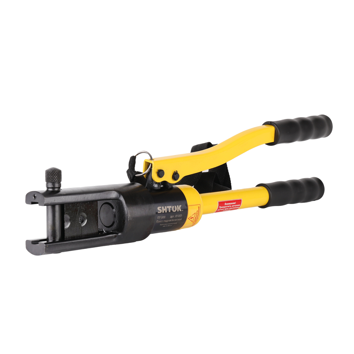 Фото. Ручной гидравлический пресс SHTOK ПГ-300 01001 предназначен для опрессовки медных и алюминиевых наконечников сечением от 10 до 300 мм2.