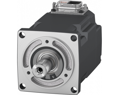 Двигатель работает от напряжения 400 В 3АС. Потребляемая мощность составляет 0,4 кВт, а номинальная скорость вращения – 3000 об/мин. Момент составляет 1,27 Нм. Высота вала – 30 мм. Оснащен гибридным разъемом AM21-bit и шпонкой. Предусмотрена защита IP65 с маслоотводящей уплотнением. Рекомендованный привод – SINAMICS S200.