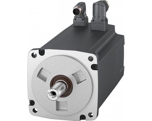 Двигатель работает от напряжения 400 В 3АС. Номинальная потребляемая мощность составляет 2 кВт, а скорость 2000 об/мин. Момент M0 равен 13.3 Нм, а момент Mn – 9.55 Нм. Высота вала составляет 65 мм. Двигатель оснащен 17-битным угловым разъемом и шпоночным валом. Обеспечивается защита IP65 с маслосъемником. Рекомендуется использовать с приводом SINAMICS S200.