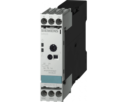 Реле времени обеспечивает задержку включения. Имеет один перекидной контакт. Доступно 15 диапазонов задержки: 1 секунда, 3 секунды, 10 секунд, 30 секунд, 100 секунд, а также диапазоны в минутах, часах. Поддерживаются напряжения AC 24 В, 200-240 В и DC 24 В, 0.7-1.25 US.