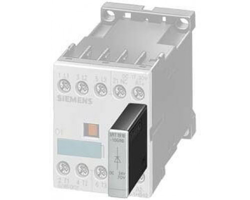 Диодная комбинация предназначена для использования с контакторами типоразмера S00. Рабочее напряжение составляет 24-250 В. Встроенный подавитель помех обеспечивает снижение электромагнитных помех. Предназначена для монтажа непосредственно на контакторы.