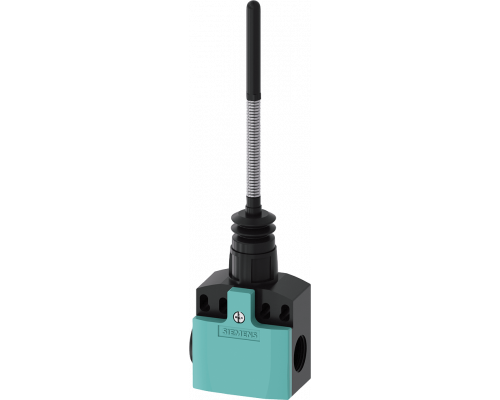 Корпус выполнен из пластика и соответствует стандарту EN номенклатуры 50041. Предусмотрено два подключения M20 x 1,5. Конфигурация контактов: 1 НО/1 НЗ, тип - мгновенного действия с упругим стержнем. Длина стержня составляет 142,5 мм. Оснащен красным светодиодом, работающим при 24 В. Подключение осуществляется через 4-полюсный штекер M12 с двумя хомутами для крепления, рассчитанными на диаметр 25–28 мм. Возможна реализация по спецификации заказчика.