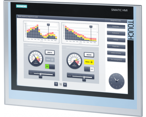 Панель оператора SIMATIC TP1500 COMFORT представляет собой сенсорное устройство с широким 15-дюймовым TFT-дисплеем, способным отображать 16 миллионов цветов. В панели предусмотрены интерфейсы PROFINET и MPI/PROFIBUS DP для интеграции в системы автоматизации. Доступно 24 МБ памяти пользователя для хранения данных и приложений. Операционная система - Windows CE 6.0. Настройка панели осуществляется в среде WINCC Comfort V11.