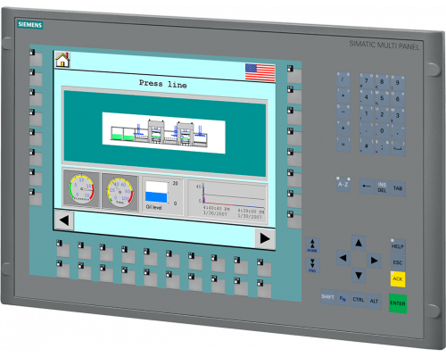 Предназначена для использования в качестве клавиатурной мультипанели. Используется 12-дюймовый цветной TFT-экран. В памяти доступно 12 Мб для хранения данных пользователя. Настройка осуществляется в среде WinCC Flexible 2007. Корпус выполнен с алюминиевой фронтальной частью и оснащен стандартными креплениями.