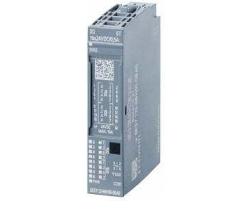 Модуль предназначен для установки на базовый блок типа A0. Обеспечивается цветовой код CC00 и диагностика модуля. Модуль SIMATIC ET 200SP имеет 16 дискретных выходов, рассчитанных на 24В и 0.5A.