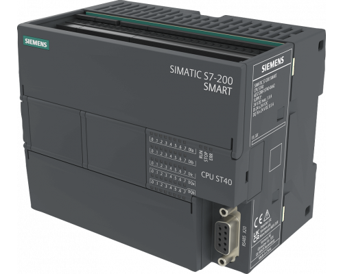 Модуль SIMATIC S7-200 SMART представляет собой процессорный модуль типа CPU ST40, версия V3.0, работающий от постоянного тока (DC/DC/DC). Он оснащен встроенными цифровыми входами: 24 входа 24 В DC и 16 выходами 24 В DC. Питание осуществляется от источника постоянного тока в диапазоне 20.4 - 28.8 В DC. Объем памяти для программ и данных составляет 80 КБ. Поддерживаются функции управления движением, CAM, шестеренчатые механизмы, а также встроенный веб-сервер.