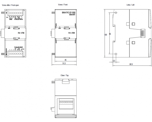 Модуль аналогового ввода SM AI04 предназначен для использования с контроллерами SIMATIC S7-200 SMART. Он обеспечивает 4 аналоговых входа, предназначенных для подключения термопар. Модуль позволяет интегрировать сигналы от датчиков температуры в систему управления и автоматизации.