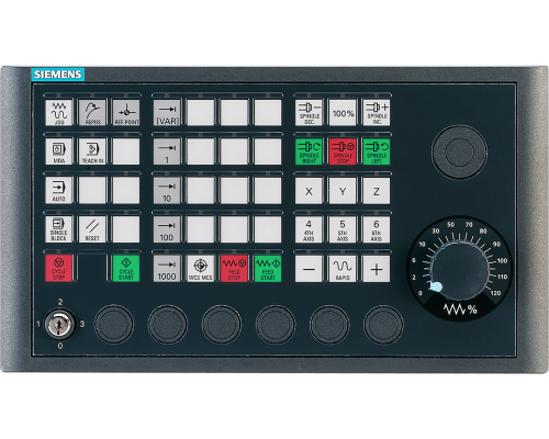 Предназначен для использования в станках. Пульт оснащен пленочными кнопками. Ширина составляет 310 мм. Поддерживает интерфейсы MPI и PROFIBUS-DP.