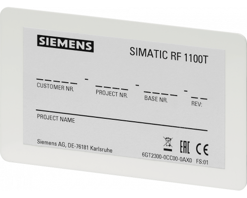 RFID-карта RF1100T предназначена для работы со всеми считывателями SIMATIC RF1000. Используется технология MIFARE DESFire EV2. Объем памяти составляет 8KБ. Обеспечивается защита IP67. Рабочий температурный диапазон от -25 до +60 °C. Габариты карты: 85x54x0,8 мм. Минимальный заказ – от 5 штук.
