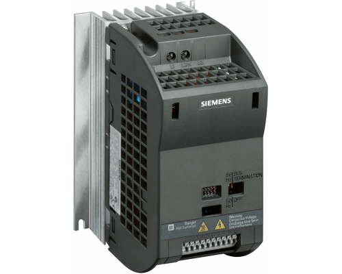 Привод SINAMICS G110 имеет встроенный фильтр класса В. Питание привода осуществляется от сети 200-240В с допустимым отклонением ±10% и частотой 47-63 Гц. Предусмотрен интерфейс RS485 для обмена данными по протоколу USS. Номинальная мощность привода составляет 0,75 кВт, а номинальный ток – 0,75 кВт. Привод оснащен защитой от перегрузки до 150% от номинального тока в течение 60 секунд. Габаритные размеры привода: 150 x 90 x 131 мм. Степень защиты: IP20. Температура окружающей среды.