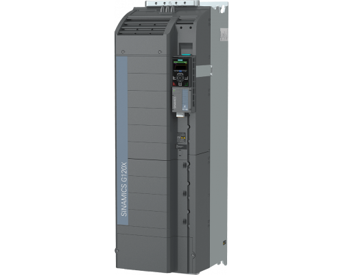 Преобразователь SINAMICS G120X имеет номинальную мощность 250 кВт при 110% нагрузке в течение 60 секунд и 100% в течение 240 секунд. Встроен фильтр радиопомех категории С3. Питание осуществляется от сети 500-690В 3AC с допустимым отклонением ±10% и частотой 47-63 Гц. Рабочая температура окружающей среды находится в диапазоне от -20 до +45 °C. Степень защиты – IP20/UL, тип исполнения – открытого типа живописи 3C2.