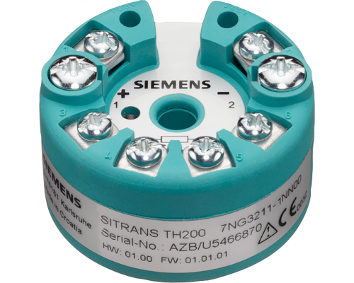 Преобразователь температуры SITRANS TH200 предназначен для установки в соединительную головку с электрической изоляцией. Используется 2-х проводная система с передачей сигнала 4-20 мА. Устройство программируемое и имеет взрывозащиту по ATEX. Преобразователь предназначен для монтажа в головку сенсора и имеет гальваническую развязку. Предусмотрено искробезопасное исполнение и поддержка зоны 2.