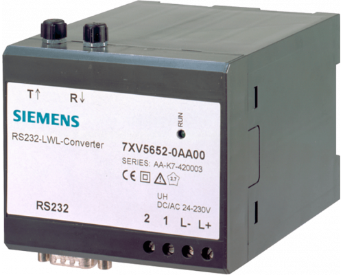 Конвертер обеспечивает преобразование оптического сигнала в интерфейс RS232 со скоростью до 115 кбод. Питание осуществляется от 24–250 В DC или 110–220 В AC. Предусмотрено реле оповещения об ошибках подключения. Подключение к интерфейсу RS232 осуществляется через 9-контактный штекер D-sub. Оптическое подключение реализовано с использованием разъема ST и длины волны 820 нм. Устройство предназначено для монтажа на DIN-рейку.