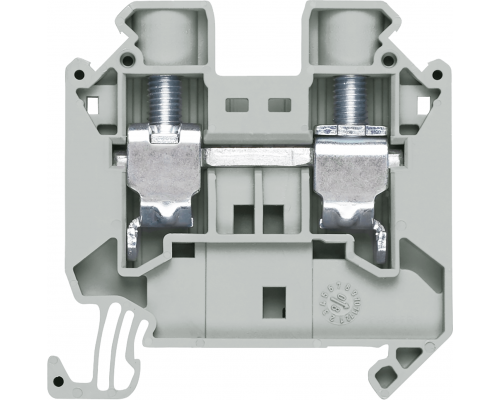Предлагается клеммная колодка проходного типа. Используются винтовые клеммы. Размер клеммы составляет 16,0 мм². Ширина клеммы – 12,0 мм. Цвет изделия – серый.
