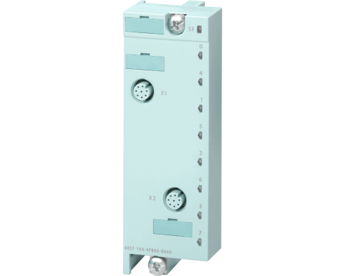 Соединительный модуль предназначен для электронных модулей дискретного ввода/вывода Simatic DP. Модуль предназначен для использования с модулями ввода 8DI = 24В и модулями выхода 8DO = 24В/0,5А. Имеет два разъема M12, каждый с 8-штырьковым подключением. Совместим с системой ET 200PRO.