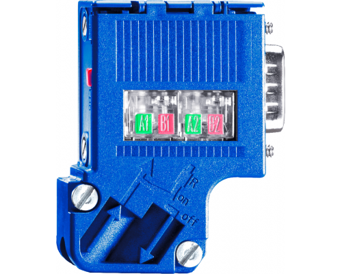 Соединитель предназначен для подключения к Profibus и обеспечивает соединение на прокол до 1,5 Мбит/с. Имеет наклонный вывод кабеля и размеры 16 x 72.7 x 34 мм. Предусмотрено активное окончание шины для электрических цепей RS485-IS. Не содержит гнезда для подключения программатора и предназначен только для подключения к Simatic DP.