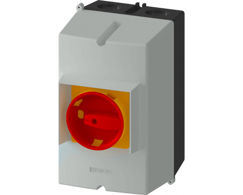 Корпус выполнен из литого алюминия и имеет степень защиты IP65. Ширина установки составляет 72 мм. Предусмотрена PE-клемма с поворотным приводом желтого/красного цвета для выключателей размера S0.