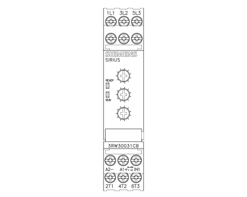 Устройство плавного пуска имеет ширину 22,5 mm. Номинальное рабочее напряжение составляет 200-400В, а также поддерживается Uc 24-230v. Параметры устройства применимы до 40 град. С. Ток устройства составляет 3A, а мощность – 1.1 кВт/400v. Предусмотрены винтовые клеммы.