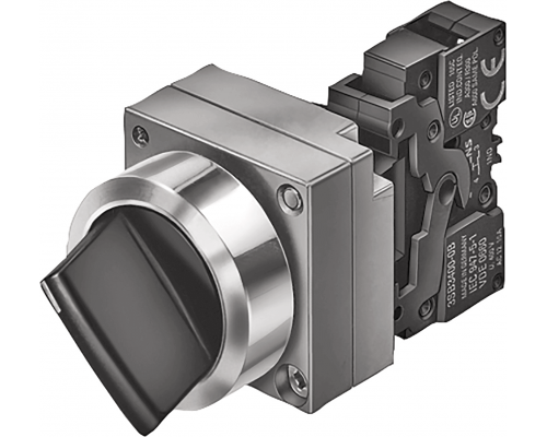 Siemens 3SB3601-2KA11 Переключатель круглой формы, с фиксацией, 1но+1нз, черный цвет, металлическая оболочка