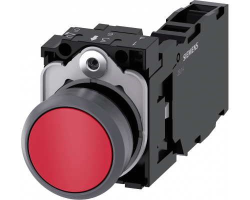 Кнопка имеет диаметр 22 мм и круглая форма. Изготовлена из пластика с металлическим фронтальным кольцом и выполнена в красном цвете. Это плоская кнопка с контактами мгновенного действия (1NO+1NC). Предусмотрен держатель и винтовые клеммы для подключения.