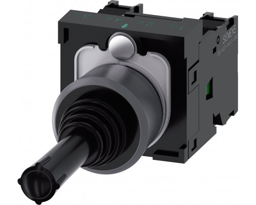 Координатный соединитель имеет диаметр 22 мм и круглую форму. Корпус выполнен из пластмассы с металлическим фронтальным кольцом. Цвет изделия – черный. Предусмотрено два положения переключателя. Переключение по горизонтали осуществляется нажатием на кнопку. Отсутствует механическая блокировка в положении «о». Соединитель оснащен держателем. Подключение осуществляется с помощью винтового зажима.