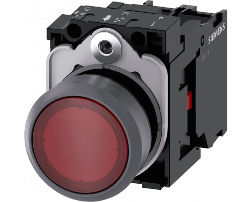 Кнопка диаметром 22 мм имеет круглую форму. Корпус выполнен из пластика с металлическим фронтальным кольцом. Кнопка красного цвета и имеет плоскую конструкцию. Предусмотрены контакты мгновенного действия (1nc) и держатель. Подсветка реализована с помощью модуля, включающего интегрированный светодиод, работающий от 24v ac/dc. Подключение осуществляется через винтовые клеммы.