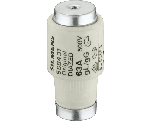 Siemens 5SB4311 Предохранитель diazed тип DI, номинальный ток 63 А, номинальное напряжение 500 В AC / 440 В DC, класс GG