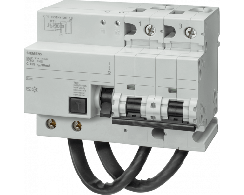 Автоматический выключатель относится к типу AC. Номинальный ток отключения составляет 10 кА. Выключатель имеет два полюса (2P). Характеристики устройства – тип B. Входной ток (In) равен 125 А. Номинальное напряжение переменного тока (Un AC) составляет 400 В. Устройство оснащено защитой от утечки тока с номинальным током 30 мА.