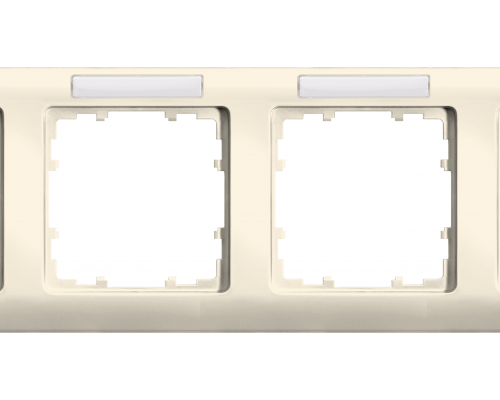 Рамка имеет горизонтальную ориентацию. Размеры составляют 293x80 мм. Предназначена для установки в Delta line. Выполнена в белом цвете. Предусмотрено поле для надписи. Количество мест – четыре.