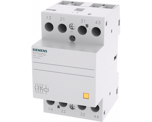 Контактор предназначен для коммутации цепей переменного и постоянного тока. Имеет 2 нормально открытых (NO) и 2 нормально замкнутых (NC) контакта. Рабочее напряжение для переменного тока составляет 230/400 В, ток – 63 А. Для активации используется напряжение 230 В (AC) или 220 В (DC).