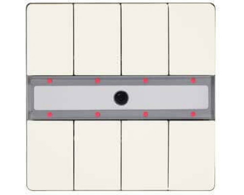 Панель включает четыре пары клавиш. Предусмотрен светодиод для индикации состояния. Устройство оснащено контроллером сцен и инфракрасным приемником. Корпус выполнен в титаново-белом цвете.