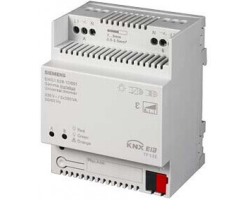 Диммер является универсальным устройством. Он предназначен для работы с нагрузкой до 2 x 300VA. Модель 5Wg1528-1db01.