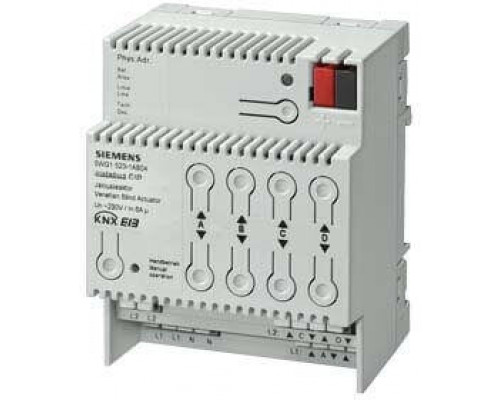 Модуль управления жалюзи 5Wg1523-1ab04 предназначен для управления жалюзи типа n 523/04. Он имеет функцию учета солнечной активности. Модуль работает от четырех 230V цепей с максимальной нагрузкой 6A на цепь. Предназначен для установки на DIN-рейку.