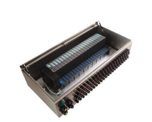 Шкаф управления выполнен из нержавеющей стали и имеет ex-исполнение. Это пустой шкаф, готовый к установке, с откидывающейся вверх дверцей. Предусмотрена степень защиты IP65. Размеры шкафа составляют 650x450x230 мм. Внутри шкафа может быть размещено до 15 i/o-модулей, включая установленную рейку заземления и четыре кабельных ввода M25.