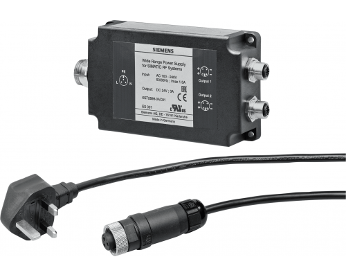 Блок питания предназначен для систем Simatic RF. Входное напряжение составляет от 100 до 240 В переменного тока, выходное – 24 В постоянного тока, максимальный ток 3A. Предусмотрена защита IP67. В комплекте поставляется кабель питания со штекером стандарта UK. Комплект включает один блок питания и один кабель питания.