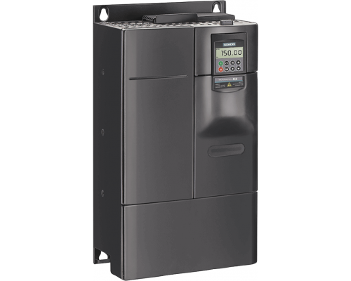 Инвертор Micromaster 440 оснащен встроенным фильтром класса А. Напряжение составляет 380-480 В с допустимым отклонением ±10% и частотой 47-63 Гц. Мощность при постоянном моменте нагрузки составляет 18,5 кВт, при перегрузке 150% в течение 60 секунд и 200% в течение 3 секунд. Мощность при переменном моменте нагрузки составляет 22 кВт. Габариты устройства: 520 x 275 x 245 мм (ширина x глубина x высота). Класс защиты – I.