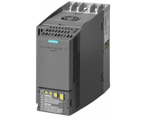 Привод обладает номинальной мощностью 7,5 кВт и способен выдерживать перегрузку в 150% на протяжении 3 секунд. Питание осуществляется от сети 380-480В с допустимым отклонением ±10/±20% и частотой 47-63 Гц без фильтрации. Предусмотрен интерфейс ввода/вывода: 6 дискретных входов, 2 дискретных выхода, 1 аналоговый вход, 1 аналоговый выход. Интегрирована функция Safe Torque Off. Встроенный интерфейс: Profibus-dp. Степень защиты IP20/UL open type. Габариты: 196x100x203 мм. Питание осуществляется от внешнего источника 24В.