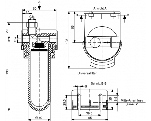 Фильтр универсальный оснащен элементом из стекловолокна с размером пор 2 микрон. Головка фильтра изготовлена из поливинилиденфторида (ПВДФ). Корпус фильтра выполнен из стекла. Предусмотрены газовые соединения G1/4 (женское исполнение).