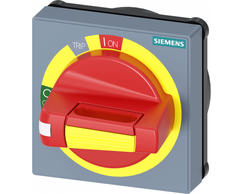Рукоятка предназначена для аварийного останова. Она имеет лицевую накладку и не включает компенсатор допусков. Учитывается открытое положение двери. Применяется для серий 3vm 100/160/250, 3va1/2 100/160/250 и 3va5/6 125/150/250.