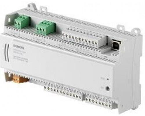 Это компактный комнатный контроллер. Он поддерживает протокол BACnet/MSTP и работает от напряжения 24V. Контроллер имеет корпус типа DIN. В его распоряжении 2 цифровых входа (DI), 4 универсальных входа (UI), 4 аналоговых выхода (AO) и 8 тиристорных выходов. Предназначен для использования в помещениях.